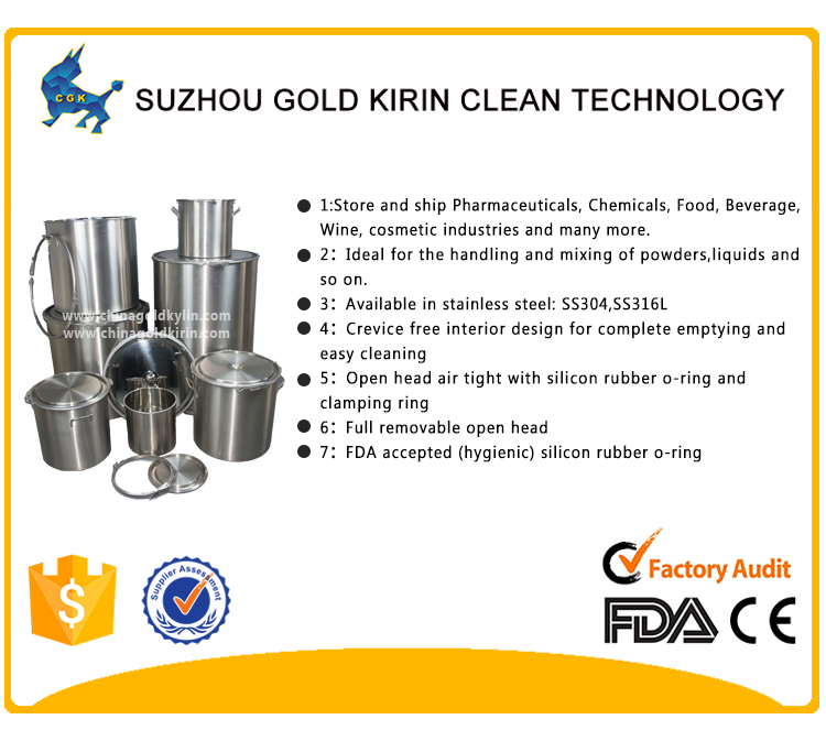 • stainless steel drum/tank/barrel/bucket/pail