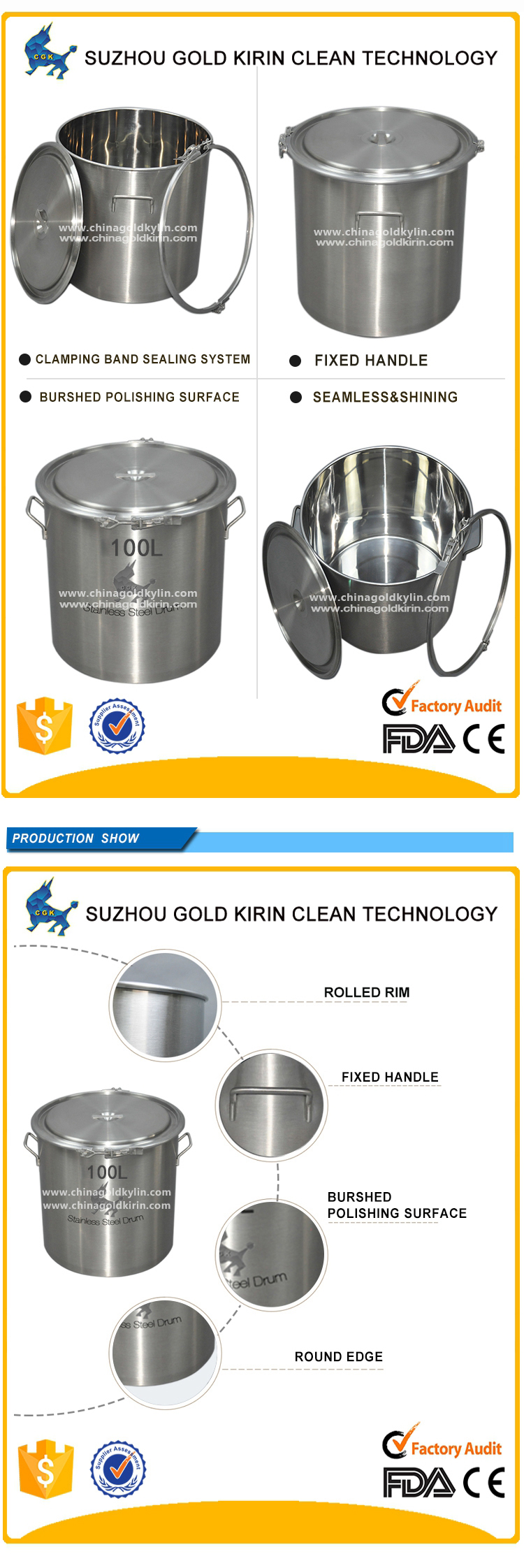 Suzhou gold kirin clean technology Co., Ltd. is a specialized company who focus on stainless steel barrel、stainless steel sealed barrel and other various kinds of stainless steel products for clean workshop. Our company is located in Wuzhong Tai lake scenic area, Suzhou city which is well known as ‘paradise on earth’. At the same time, our company is near the exit of Suzhou expressway, the traffic is very convenient.