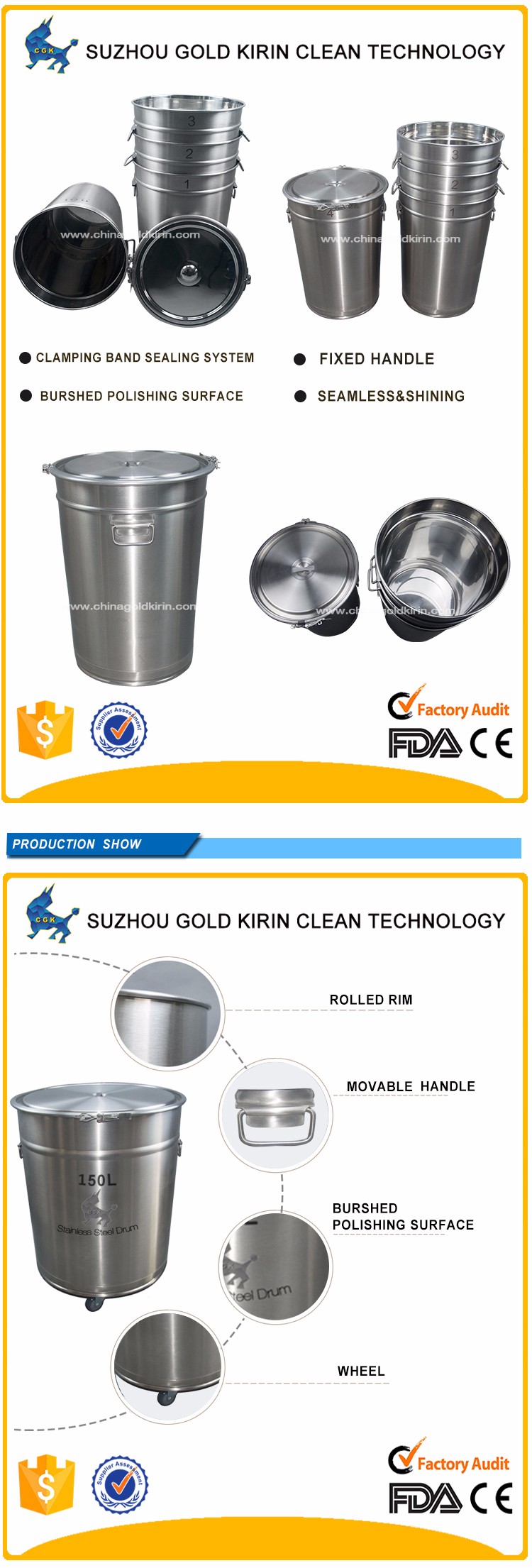• stainless steel drum/tank/barrel/bucket/pail