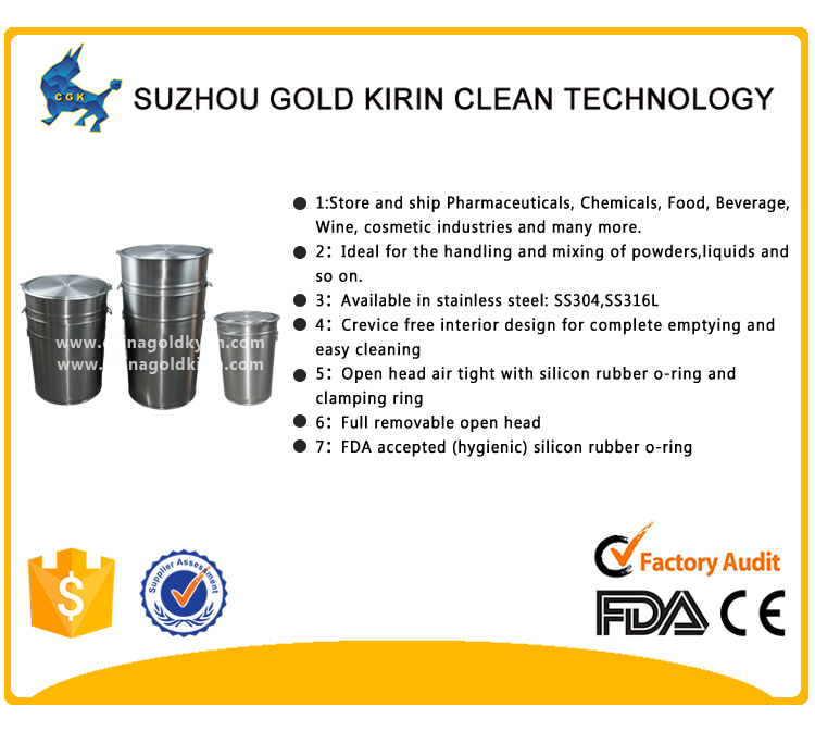 • stainless steel drum/tank/barrel/bucket/pail