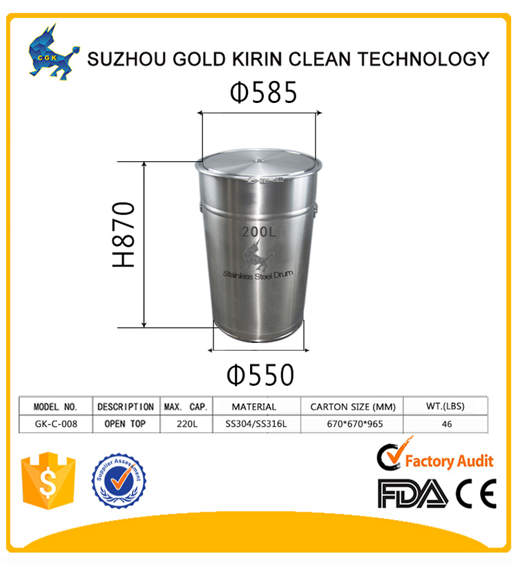 • stainless steel drum/tank/barrel/bucket/pail