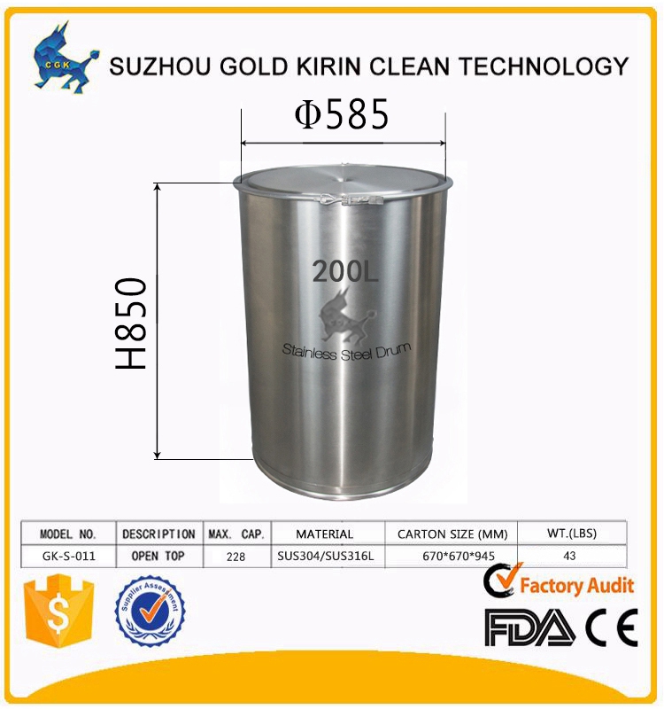 • stainless steel drum/tank/barrel/bucket/pail